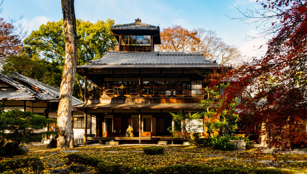 晩秋になると、庭園一面に広がる黄や赤の葉が優雅に時を刻む。また、大文字焼きの夜には、主屋の向う側に「大」の字が映し出される景観も、その立地の良さを物語る。鴨川沿いには、このような邸宅が多く、頼山陽旧宅「山紫水明書斎」なども存在する。