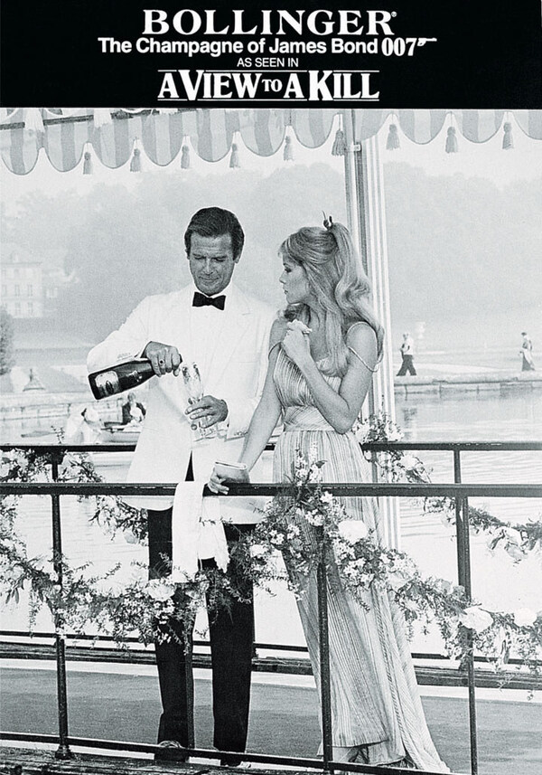 2025年は James Bond シリーズ「A View To A Kill」公開40周年の節目の年でもあり、二つの象徴的な名前の共有する歴史に新たな一章が加わります。Champagne Bollingerは本作で象徴的な登場を果たしています。Zorinのフランス邸宅でのパーティーでは、上流社会の雰囲気を醸し出すChampagne Bollingerが振る舞われ、映画ポスターにも描かれているように、James BondとStacey SuttonがChampagne Bollingerのボトルを共に楽しみます。Bond(ROGER MOORE)がZorinのフランス邸宅でStacey Sutton(TANYA ROBERTS)にChampagne Bollingerをグラスに注ぎます。JAMES BOND、および関連するJames Bondの著作権および/または商標は、London Operations LLCの独占的ライセンシーであるMetro-Goldwyn-Mayer Studios Inc.により使用が認可されています。© 2025 Metro-Goldwyn-Mayer Studios Inc. All Rights Reserved.