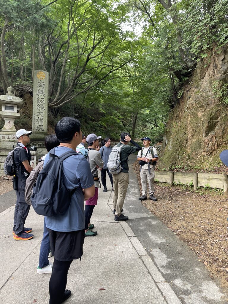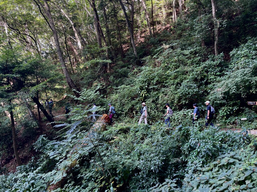 ガイドを務めた東京山側DMCの櫻澤裕樹氏は、登山道の成り立ちや髙尾山薬王院の信仰文化、周辺の地質構造や自生植物の特性に至るまで、分野横断的な知見をもとに各所での「意味づけ」を丁寧に紐解いていきました。