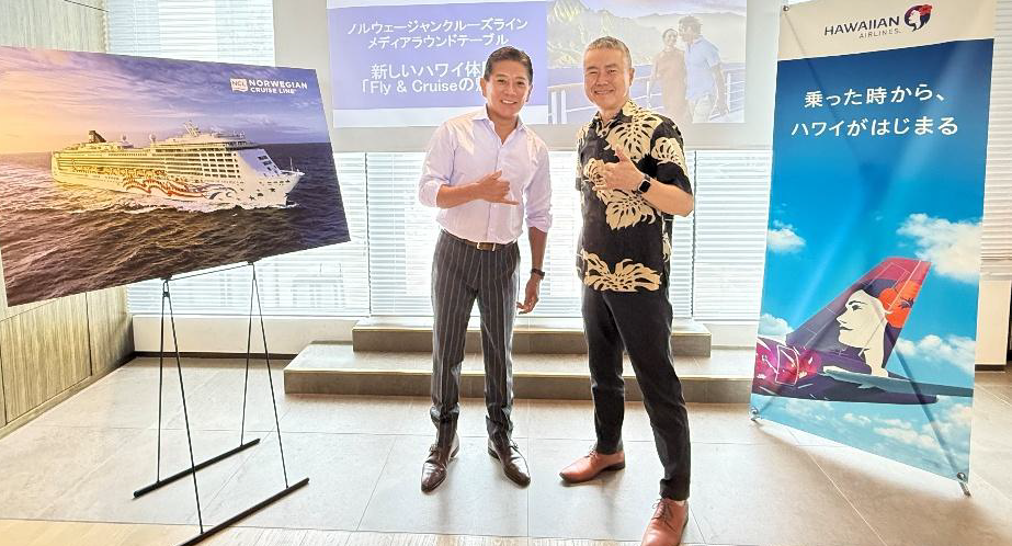 説明会では、同社の矢島隆彦日本地域代表がハワイクルーズの現状と今後の見通しを説明。ゲストにハワイアン航空の坂口暢日本支社長を迎え、ハワイ路線の最新情報や日本からのアクセス改善について語った。物価高や円安でハワイ旅行が敬遠される傾向を踏まえ、「Fly & Cruiseで楽しむ新しいハワイ体験」をテーマにトークセッションを行った。