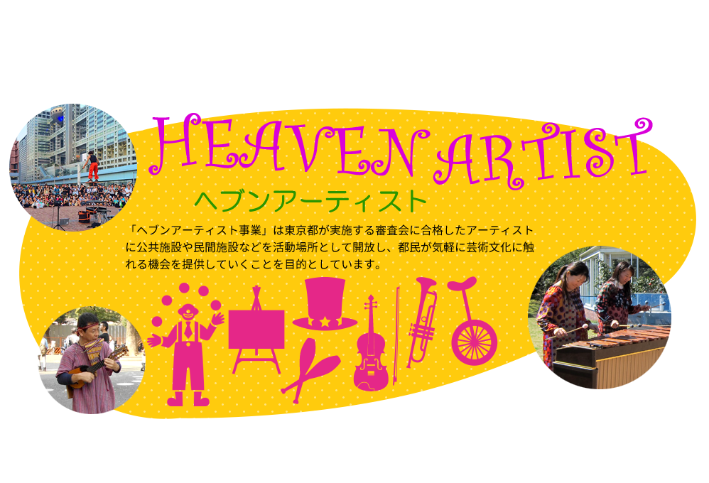 ヘブンアーティストは、東京都が2002年に創設したライセンス制度で、審査を経て認定された大道芸人や音楽家が公園や駅前などで活動している。