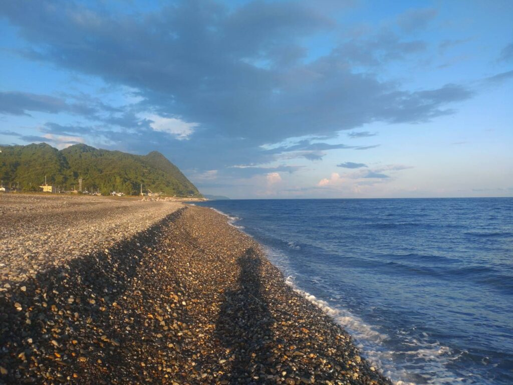ホテルにチェックイン後、日没が近づく中で向かったのはラベンダービーチ。日本一岩石の種類が多いと言われるこの海岸で、石探しに集中です。