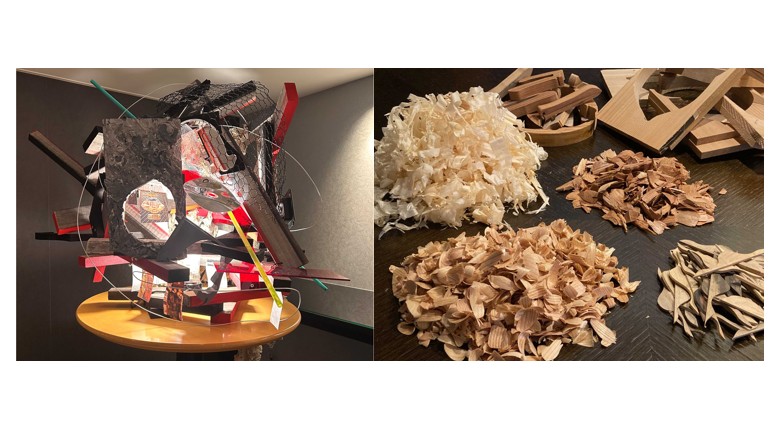 「買い物」「観光」「食」のイメージが強い大阪ですが、大阪には全国に誇る多くの伝統工芸品が存在します。今回展示する作品は、「大阪泉州桐箪笥(たんす)」「大阪欄間(らんま)」「泉州南部織」の製造過程で生じた端材を活用し、高さ約2mのインスタレーションを制作しました。長年にわたり大阪の文化と産業を支えてきた工芸の魅力を、作品を通してサステナブルな視点からお伝えします。