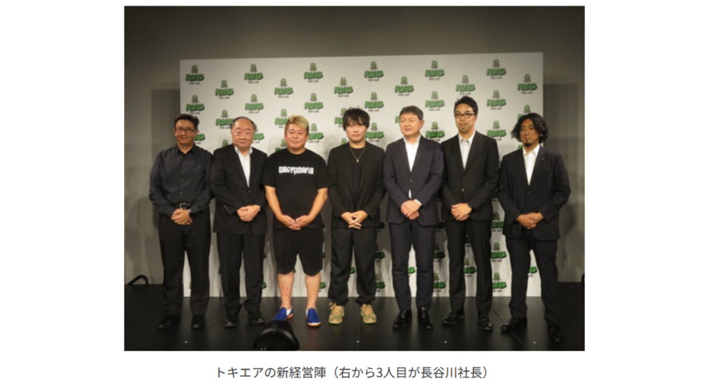 グローバルエンターテインメント企業の「LAND」が、トキエアの株式のうち32.34%を取得し「世界をシームレスにする」という企業ビジョンのもと、航空事業領域へ参入することを発表。LANDの和田直希氏が共同代表として、トキエアの代表取締役社長CEO(最高経営責任者)に就任している。堀江氏はHIUインベストメントを通し、LANDの株式の24.7%を取得したことを明らかにした。
