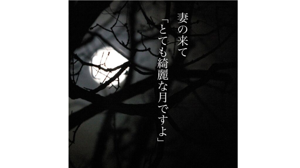 この句は、ある秋の晩、妻が私の部屋に来てやってきて「とても綺麗な月ですよ」と声をかけてくれた、そんな一瞬の出来事をそのまま詠んだものです。特別な会話があったわけではありません。ただふっと現れて何気ない口調でそう言った。それだけのことです。窓を開けて見上げた月は、本当に澄んでいて静かで綺麗でした。あまりにも見事な月だったので思わず伝えたかったのでしょう。それを伝えに来てくれた妻の優しさが心に残りました。