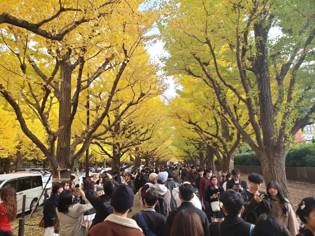 周辺のスポーツ施設では国立競技場でサッカー天皇杯準決勝、明治神宮野球場では明治神宮野球大会、秩父宮ラグビー場では関東大学ラグビー対抗戦があり、試合終了後はユニフォームをまとったサポーターたちがいちょう並木の人ごみに加わっていた。