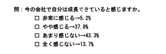 調査では、現在所属する会社において「成長できていると感じていない」人が 57.0%という結果になり、多くの人が現在の職場において成長を実感できていないと考えている実態が浮かび上がった。一方、成長を実感している人の理由としては、「できることが増えたから」が最多の 44.9%で、多くの人が「できなかったことができるようになったとき」に成長を実感することが分かった。「長く勤めたい会社」の条件に関する設問では、「福利厚生の充実」に次いで、「成長できる環境」が上位に。従業員が職場においてキャリア形成していく過程で、成長できる環境を整備していくことが重要であることを示した。