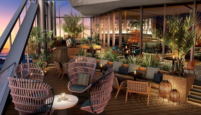 ヒューリックホテルマネジメント(東京都中央区)は、ホテルブランド「ザ・ゲートホテル」8軒目となる新施設「ザ・ゲートホテル大阪 by HULIC」(大阪市中央区南船場)を2026年6月15日に開業する。大阪メトロ心斎橋駅の北改札(出口1)に直結し、ブランド最大規模となる223室を備える関西エリアの旗艦店となる。(写真はルーフトップバーのイメージ)