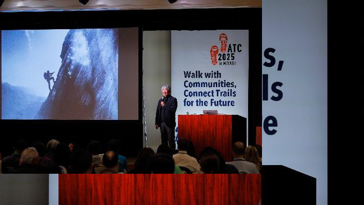 宮城県は11月14~16日、世界各国・地域のトレイル関係者が集まる国際会議「アジア・トレイルズ・カンファレンス2025 in 宮城(ATC2025)」を開催した。日本での開催は2015年の鳥取大会以来2回目。(写真はあいさつするアジア・トレイルズ・ネットワークの周事務局長)