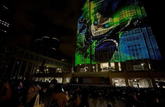上映初日の都民広場には、ファンや観光客、家族連れが集まり、累計観覧者数100万人突破を記念して配布されたライトブレスレットを身に着けた来場者で埋め尽くされた。巨大な都庁舎をキャンバスに、約14,000平方メートルの投影面に映し出される迫力ある映像が会場を包み込んだ。