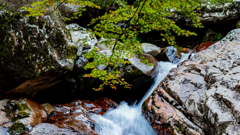 その特徴は、侵食によって形成された花崗岩の滑らかな河床。「千畳敷」や「出合滑」という広大な岩肌に清流が流れる美しい光景に出会う。そして、新緑や紅葉が素晴らしく、多くの観光客が訪れる。しかし、昨今は、夏場のキャニオニングが有名となった。涼を求める家族連れや水とたわむれる体験を好む若者たちの人気となっている。