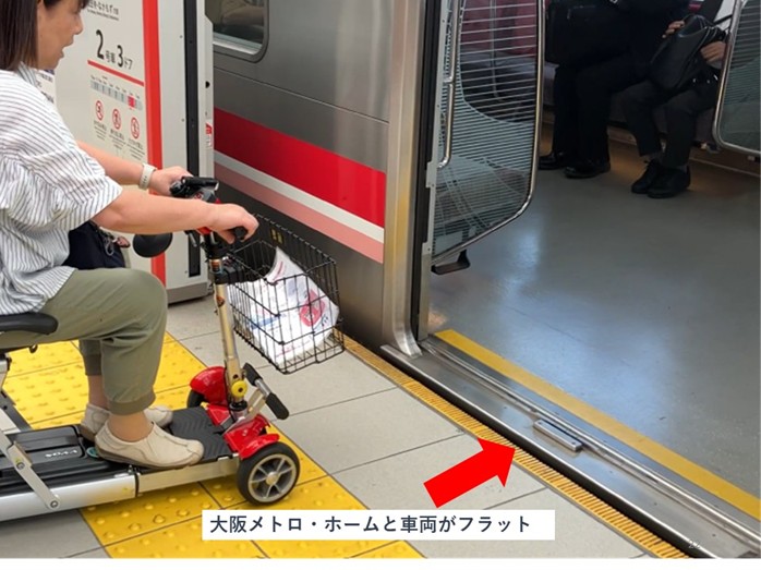 大阪では大阪メトロがホームと車両の段差を解消していたので、基本的には駅員のサポートが不要で一度に多くの車いす利用者が乗降可能でした。