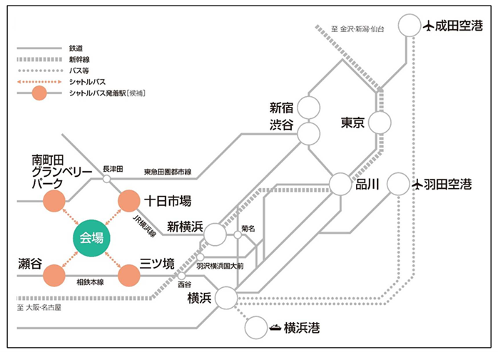 2027花博会場は駅に隣接した会場ではなく、公開されている来場者輸送実施計画の初版では周辺4駅を中心に主要駅からのシャトルバスでの輸送が計画されています。