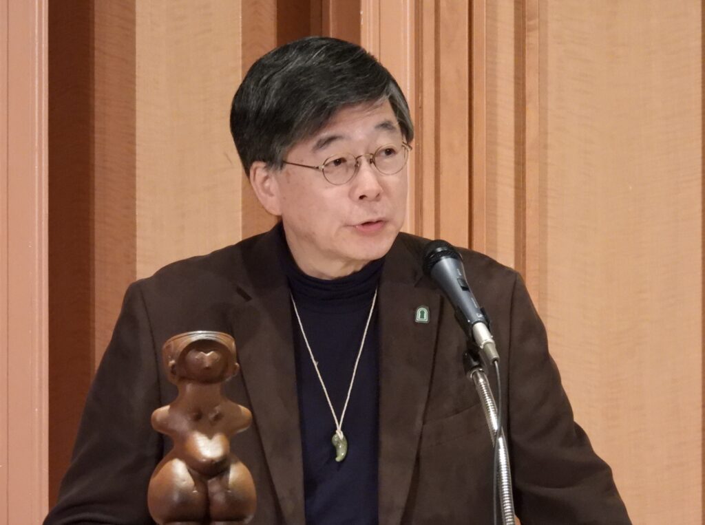 続いて登壇したANA総合研究所会長の功刀秀記氏は、「地域の古代史で日本各地をつなげよう」と題し、日本列島が古代から広域的な文化圏として結びついていた事実を紹介した。功刀氏は、古代の街道や祭祀体系、海産物・鉄・塩の流通などを例に挙げ、「地域は本来、行政区分とは関係なく、有機的につながる『文化の航路』を形成していた」と説明した。さらに、「北前船による交流は、こうした古代からのネットワークが近世で成熟した姿だ」と述べ、古代史と北前船文化との連続性を強調した。単なる物流だけでなく、技術や文化、価値観までを運ぶ総合的な交流の仕組みとして、日本各地の多様な文化を育てたと指摘した。最後に、「現代の地域連携も、歴史の中にすでに存在したつながりを読み解くことで必然性が生まれる」と述べ、古代史に基づく地域ネットワークの必然性と北前船文化の連続性について、現代につながる大きな示唆を与えた。