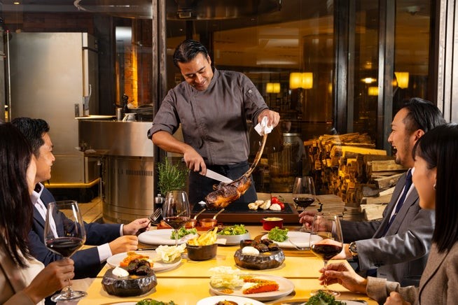 ヒルトン東京(新宿区)は2026年1月5日から、2階のグリルレストラン「メトロポリタングリル」で、約2kgの牛脂熟成国産トマホークステーキを中心に楽しむパーティープラン「ザ・トマホークテーブル」を提供する。