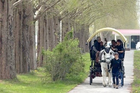 メタセコイア並木近くには2025年開業した「メタセコイアと馬の森」がある。並木道を馬車や乗馬で巡る体験のほか、引退競走馬やミニチュアホースとふれあえる施設、馬を眺めながらくつろげるカフェも備える。