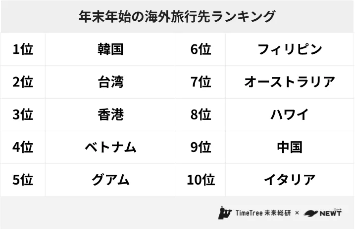 ■分析データについて 2019年1月1日〜2026年1月4日の期間で登録されたデータを対象として分析(登録ユーザー数は2019年1月時点で1200万超、2025年11月時点で7000万超) 。分析に使用したデータは、匿名性を保つために統計的に処理されている。旅行アプリ『NEWT(ニュート)』調べ 集計データ:『NEWT』予約データ 集計対象 :出国日が2025年12月25日〜1月4日までの海外ツアー。