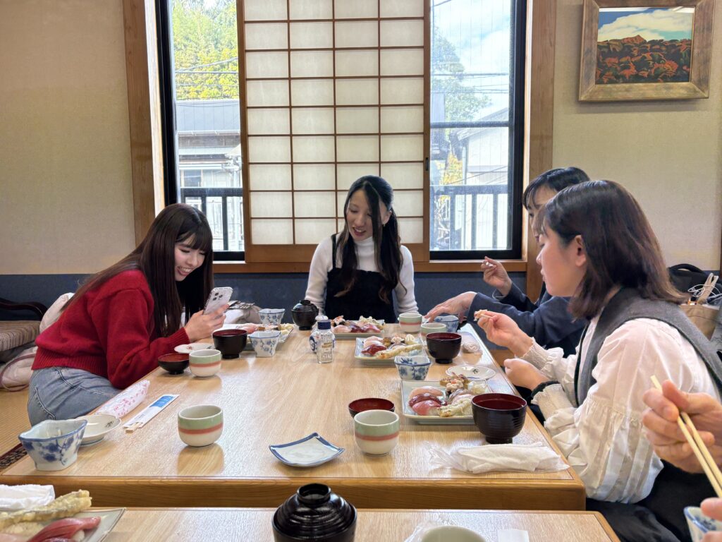 2日目の朝、参加者は三浦市の案内で、三浦市三崎水産物地方卸売市場内にある「魚市場食堂」へ向かった。まだ市場に活気が満ちる時間帯、場内で働く人々に混じって席に着く。朝食として供されたのは、脂がたっぷりとのった鮭ハラス焼きと、刻んだまぐろを贅沢に盛り付けたまぐろのたたきが一皿で味わえる定食だった。香ばしく焼かれた鮭の旨みと、まぐろの濃厚な味わいが口に広がり、参加者からは「朝からこれほどの内容とは思わなかった」と驚きの声も上がった。日々市場で働く人々が食べている普段の朝ごはんを共に味わうことで、三浦の食が暮らしの中に根づいていることを実感する時間となった。