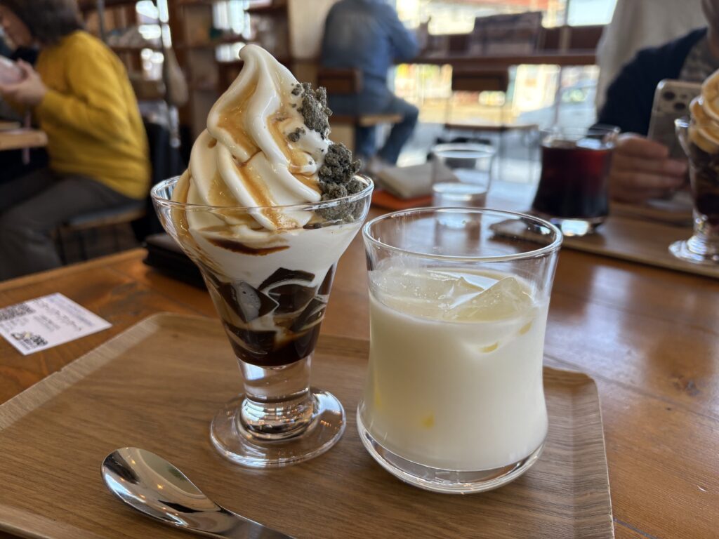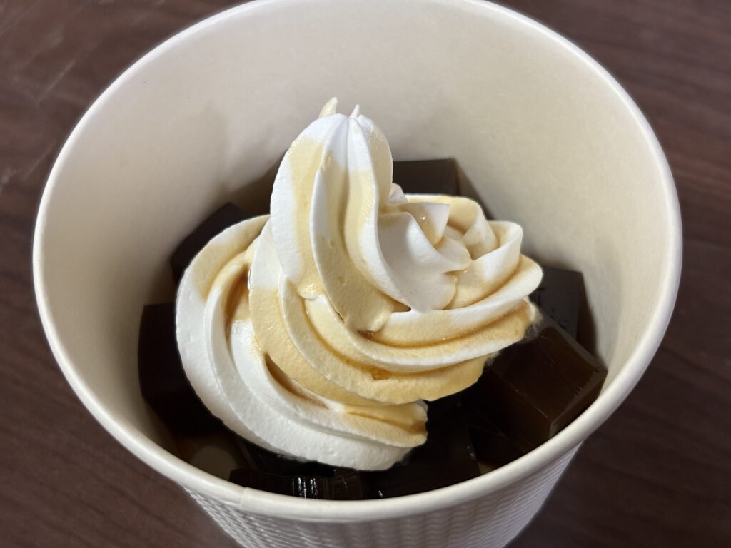 サイクリングを終えた一行は、海辺にたたずむ「三戸カフェ」でひと息ついた。ここで振る舞われたのは、新名物として注目される「黒船ところてん」。透明感のあるところてんの上にソフトクリームを重ねたスイーツで、黒船をイメージした見た目が印象的だ。磯の香りをほのかに残すところてんと、冷たい甘さのソフトクリームの意外な組み合わせに、参加者は「さっぱりしていて食後にちょうどいい」「三浦らしい発想」と笑顔を見せた。