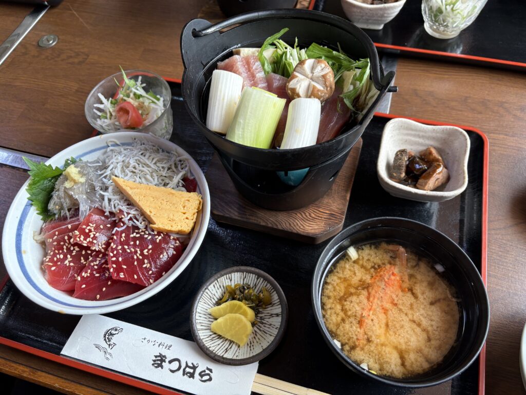 昼食は「さかな料理まつばら」で、江戸時代に大名が好んだとされるねぎま鍋と、まぐろの切り身や生シラスをふんだんに盛り込んだ三浦丼が提供された。ねぎまとは本来、脂の乗ったまぐろのトロと葱を煮込む鍋料理で、江戸の庶民から武家まで幅広く愛された。三浦市はこれを、自らのまぐろ資源と結びつけた歴史あるご当地鍋として再評価し、今後ブランド化を進める考えだ。