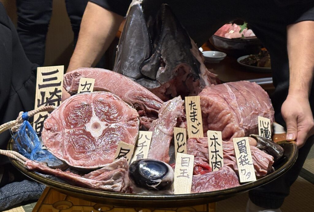 夕食会場は、地元で人気のまぐろ料理店「くろば亭」。まずは店前で、巨大なまぐろの頭部を使ったダイナミックな解体ショーが行われ、包丁が骨に当たる音や脂の切り口の輝きに、参加者は食材への敬意を新たにした。店内では「まぐろ一匹黒船フルコース」が提供され、内臓珍味や、本マグロ希少部刺身のほか、煮付け、揚げ物、寿司など、まぐろを使った「頭から尾まで余すところなく味わう」文化を体感した。