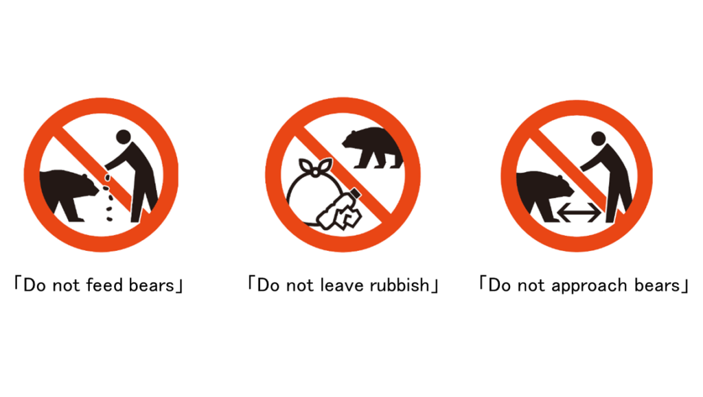 ピクトグラムは、「クマへの餌やり禁止」「ゴミ放置禁止」「クマに接近しない」の三つの行動を示す内容で、観光地や登山口などでの掲示を想定している。観光庁は、各地域において積極的な活用を呼びかけており、公式サイトからダウンロードできる。