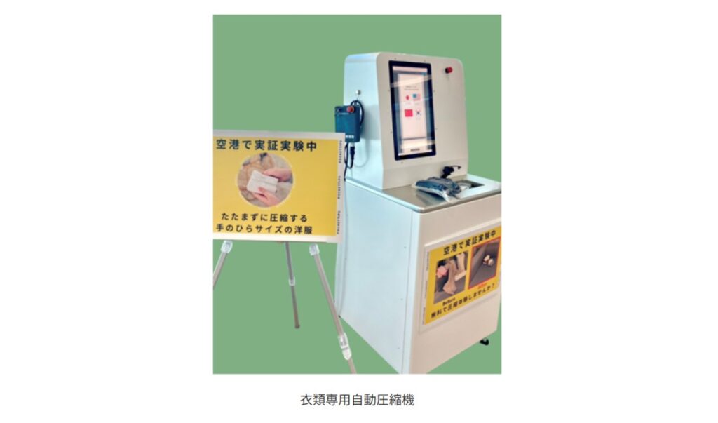 SJOYは今後、日本各地の空港で実証実験を行い、空港をはじめ、ホテルや地方自治体、公共施設などへの衣類専用自動圧縮機の導入を目指していく。