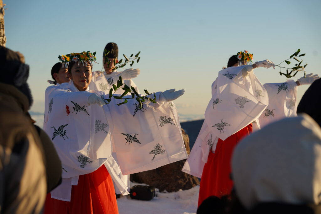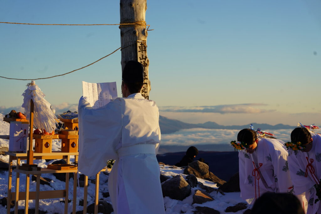 1月1日、標高1925mの車山山頂(長野県)。雲海が広がり、遠く富士山をも見渡す快晴の下、車山神社の「歳旦祭」並びに「雪中禊(せっちゅうみそぎ)」が執り行われました。