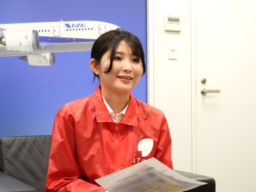 畠山 アルバイト先でクレジットカード決済をするお客様の中にANAカードを目にする機会が多く、日常の中でマイルが自然に使われている「マイルで生活できる世界」を実感しています。一方、近年「ポイ活」が広がる中でも、高齢者の方には「ポイント」そのものが必ずしも馴染み深いものではないと感じる場面もあります。取材を通じて、こうした日常の実感と重ねながら、誰にとっても分かりやすく、使いやすい仕組みづくりの重要性を改めて考えさせられました。
