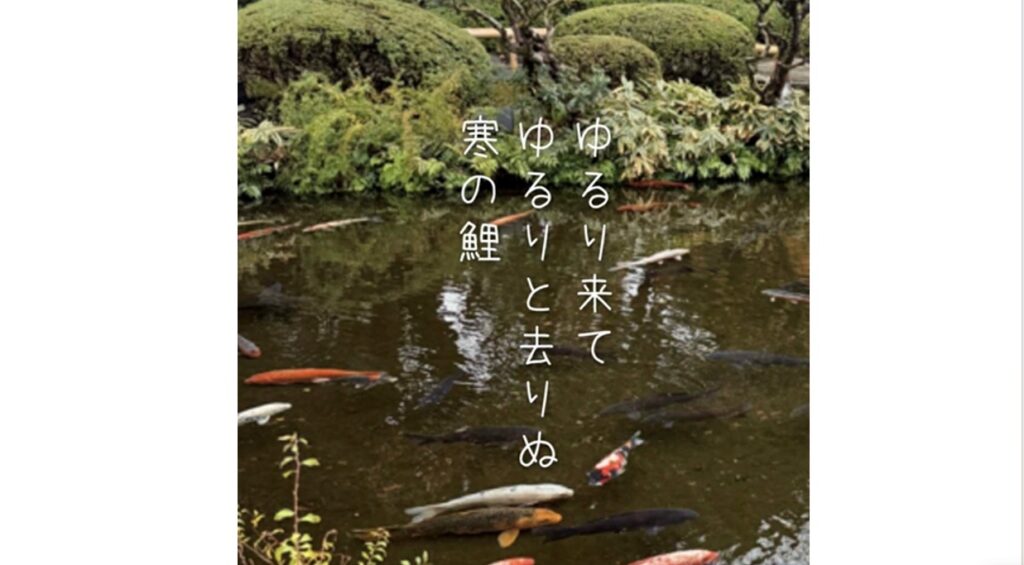 赤坂の迎賓館を後にし、都会の喧騒を忘れるかのようにホテルニューオータニの庭園へと足を向けました。広大な緑の中の池の畔で足を止めると、冬の冷たい水の中で、ゆったりと鯉が近づいてくるのが見えました。色鮮やかなその姿は、凍てつく空気の中でとても優雅に見えました。ただ水の抵抗を慈しむように泳ぎ、やがてまたゆったりと去っていく。その往来に、思わず見惚れてしまいました。齢七十を超えて、その鯉の姿を見ていると、「急がなくてもいいんだよ」という気持ちになってくるから不思議なものです。
