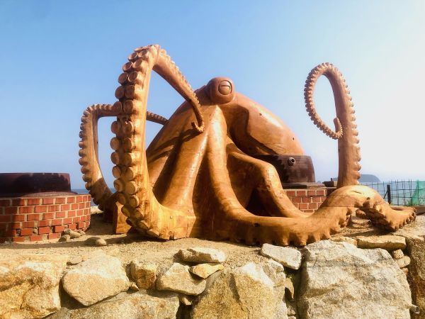 一方、映画村は、瀬戸内の島々を舞台にしたアートの祭典「瀬戸内国際芸術祭」でこれまでに公開した3作品を常設で鑑賞できるのも特徴だ。3作品は、彫刻家・尾身大輔氏が手掛けた大型の木彫り作品「ヤザイモン蛸」(25年)、消しカスアーティスト・入江早耶氏の「漁師の夢」(19年)、プロダクトデザイナー・清水久和氏の「愛のボラード」(16年)。 昨年4月に登場した「ヤザイモン蛸」は県に伝わる妖怪伝説を表現したもので、高さ1・8メートル、横2・5メートル、奥行き3・5メートルの迫力ある造形が見どころ。村内の海岸を望む一画にあり、新たな“映えスポット”にもなっている。