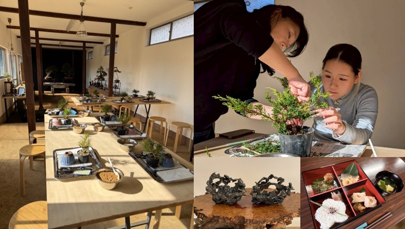会場は埼玉県川口市赤山の盆栽 喜楽園内のアトリエ。同地域は、江戸期から植木と盆栽の産地として知られる安行地区の文化的背景を色濃く残すエリアで、周辺には歴史的な屋敷や街道の面影も点在する。体験では、経験豊富な盆栽職人の指導のもと、樹形の見極め、剪定、針金掛け、構図づくりといった本格的な工程に触れられる。参加者は自ら手を動かして仕上げることも、途中から職人に委ねることも可能で、対話を通じて一つの作品を完成させていくプロセスそのものが価値となる。