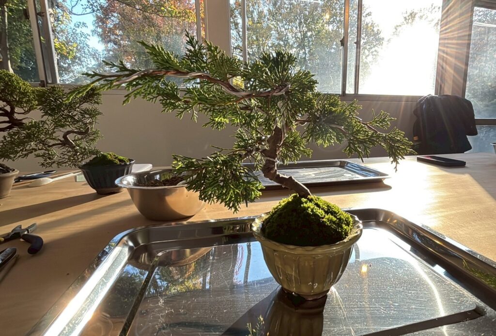 使用される器は、国内外の工芸展で評価を受けるアーティストによる一点物。従来の「鉢」という枠を超え、独立した造形作品として成立する器と、生きた樹木が対等な存在として調和する設計思想が貫かれている。樹と器が互いに主張しながらも一体となる姿は、鑑賞対象であると同時に育て続ける対象でもあり、完成した盆栽は“完成品”ではなく、時間とともに変化し続ける「生きた作品」として持ち帰れる。