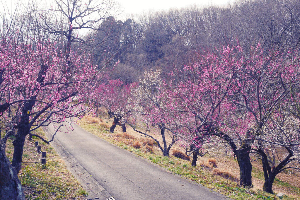 埼玉県滑川町にある国営武蔵丘陵森林公園の「梅林」で、約100品種・約400本のウメが2月20日に見頃を迎えた。見頃は3月中旬頃まで続く見込みで、2月末頃には梅林全体が最盛期を迎えると予想されている。1月下旬から咲き始めた早咲きの紅梅に続き、中咲き・遅咲きの品種が順次開花。品種数が多いため長期間にわたり花景色を楽しめるのが特徴だ。白、桃、紅の花々が織りなす彩りと、梅林全体に漂う上品で甘い香りが、春の訪れを感じさせる。