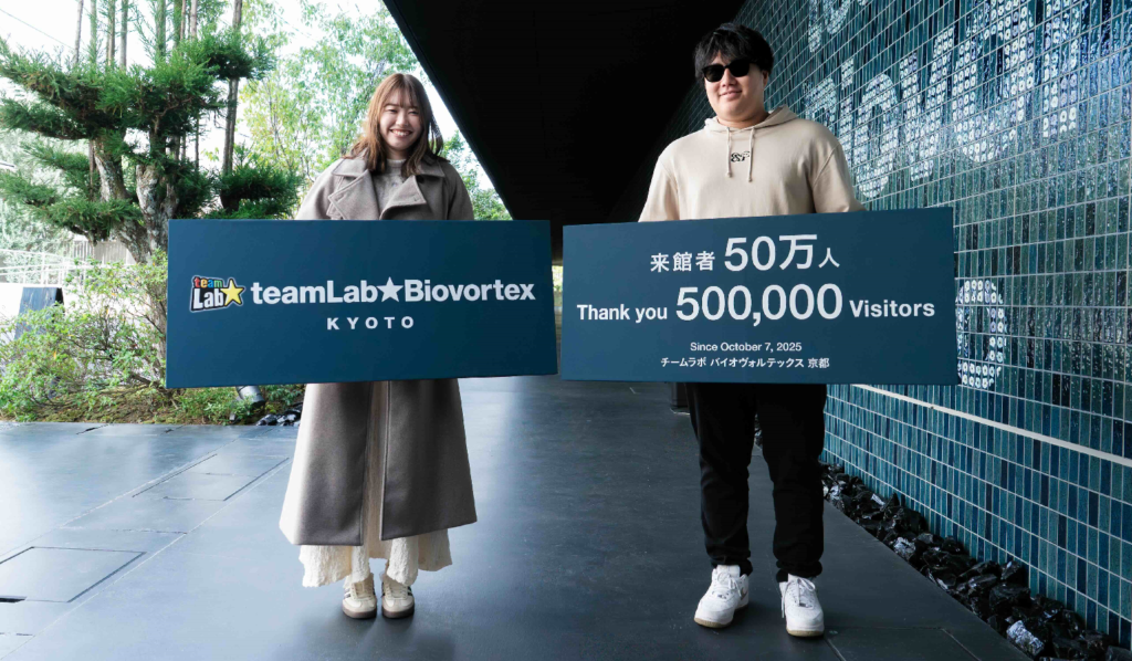 チームラボは、「チームラボ バイオヴォルテックス 京都」の来館者数が、開業から5か月となる2月19日に50万人を突破したと発表した。訪日客の割合が高く、米国、オーストラリア、カナダ、ドイツなどからの来館者が多い。