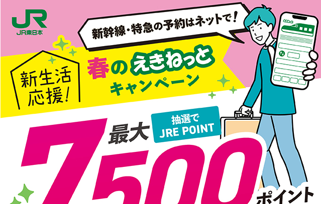 JR東日本は、春の旅行需要やゴールデンウィークの移動増加を見据え、インターネット予約サービス「えきねっと」の利用促進キャンペーンを2月25日から始めた。