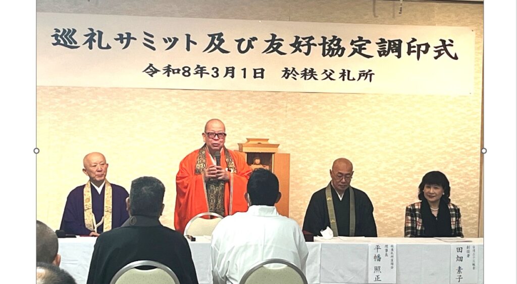 12年ごとに行われる秩父札所午歳(うまどし)総開帳が3月18日から11月30日まで行われるのに先立ち、日本百観音霊場が埼玉県秩父市の秩父神社に集まり、巡礼サミットを開催した。秩父34ケ所、西国33ケ所、坂東33ケ所、そしてはるばる台湾から33観音の創設者も参加、改めて友好協定に調印した。
