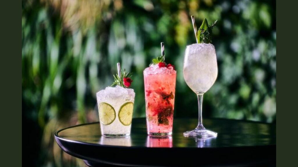 52階のルーフトップバーでは、フレッシュハーブとジンを合わせた「ハーバル ジンサワー カクテル」を期間限定で扱う。ジャスミンティーやタイム、ラズベリーなどを使った3種類のカクテルを用意し、地上約250メートルからの景色とともに味わえる。