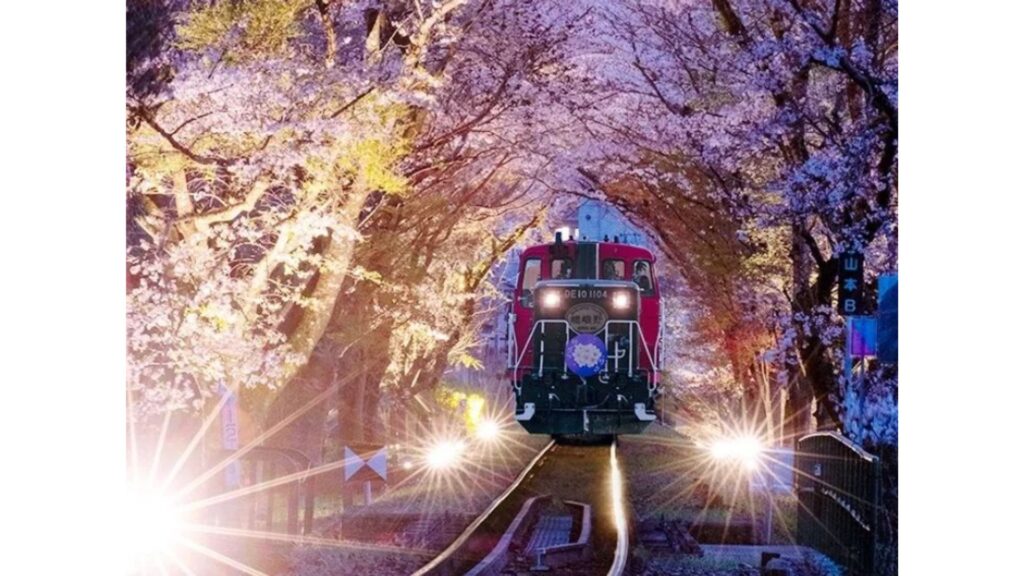 3つ目は京都・嵯峨野トロッコ列車を使った夜桜体験だ。春限定でイルミネーション装飾された「光の幻想列車」に乗車し、幻想的な夜桜と渓谷美を車窓から堪能できる。湯豆腐ディナーが付いた京都駅発のバスツアーで、3月27日から4月5日の開催となる。