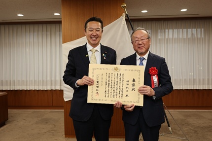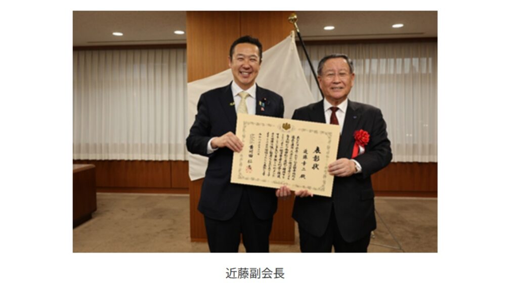 旅行業公正取引協議会(小谷野悦光会長)の近藤幸二副会長と福田叙久監事は3月18日(水)に、内閣府特命担当大臣から大臣表彰を受けた。公正競争規約の運用を通じて景品表示法の目的達成に顕著な功績があった「景品表示適正化功績者」として表彰されたもの。