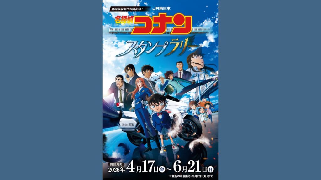 JR東日本は4月17日から6月21日まで、劇場版「名探偵コナン ハイウェイの堕天使」の公開を記念したスタンプラリーを実施する。首都圏の27駅に加え、仙台駅と長野駅を含む計29駅で展開する。