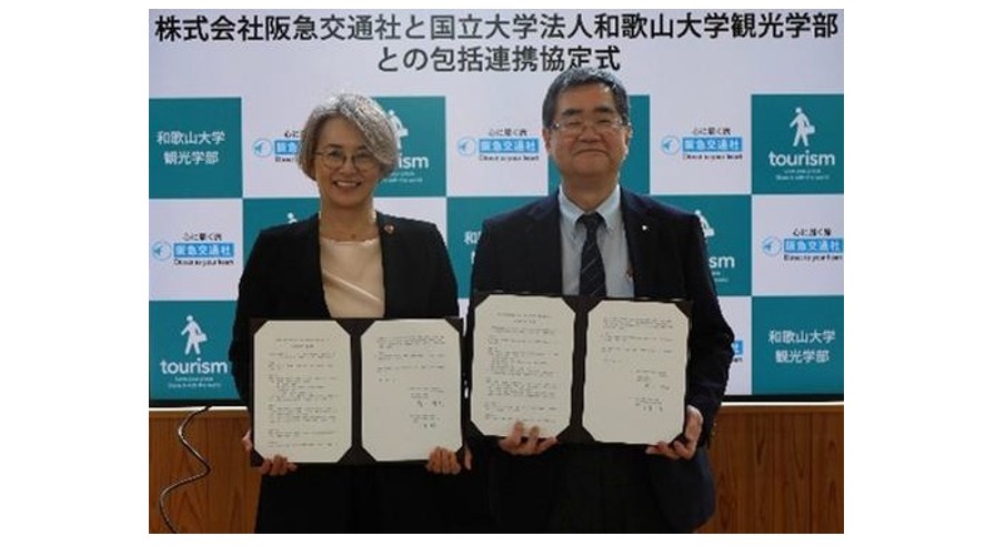 阪急交通社(酒井淳社長、大阪府大阪市)は3月23日、和歌山大学観光学部(大浦由美学部長、和歌山県和歌山市)と観光人材育成と教育・研究の推進を目的に、包括連携協定を結んだ。観光業界の人材育成を通じ、地域社会の持続可能な発展に寄与することを目指す。