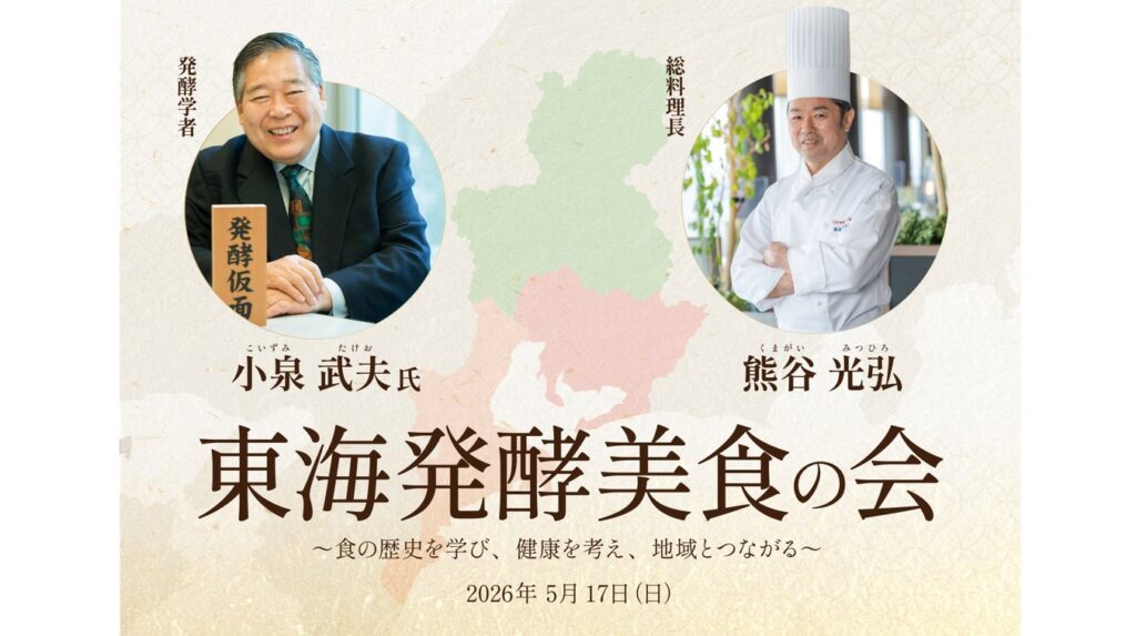 イベントでは、発酵学者の小泉武夫氏による講演と、和・洋・中の料理人が手がける特別コースを提供。東海三県の発酵文化や食材の魅力を、知識と体験の両面から発信する。