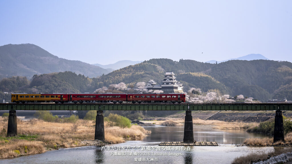 地域素材として展開していく写真にも「主役」が必要だ。そのような中、お世話になっていた国の関係機関のある方が「鉄道が走る城下町の風景」というテーマを私にくださった。このことを考えて、撮影するうちに「音」と「動き」が絡む写真で城下町大洲を表現するとしたら、「どういう場面をどう撮るか」に至り現在の撮影スタイルが生まれた。