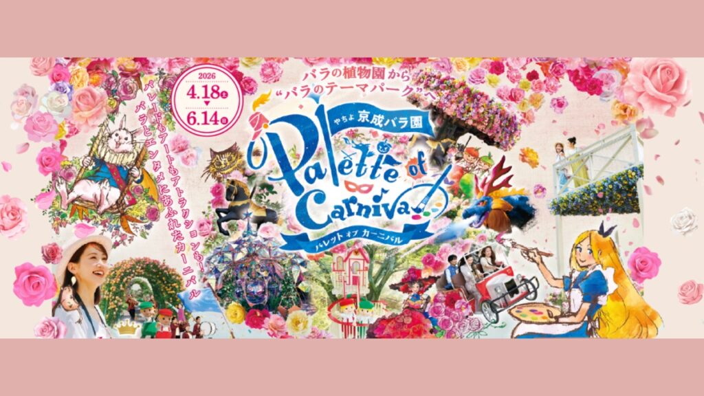 千葉県八千代市の京成バラ園は4月18日から6月14日まで、春のイベント「パレット オブ カーニバル」を開く。1年で最もバラが咲きそろう時期に合わせた恒例企画で、約1,600品種1万株のバラが順次開花する。