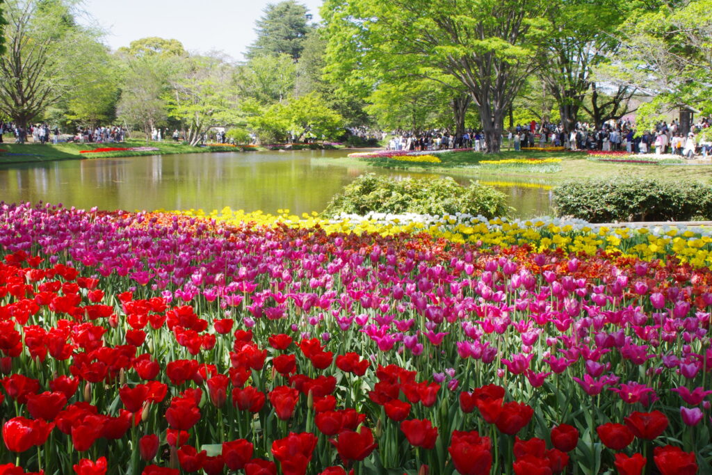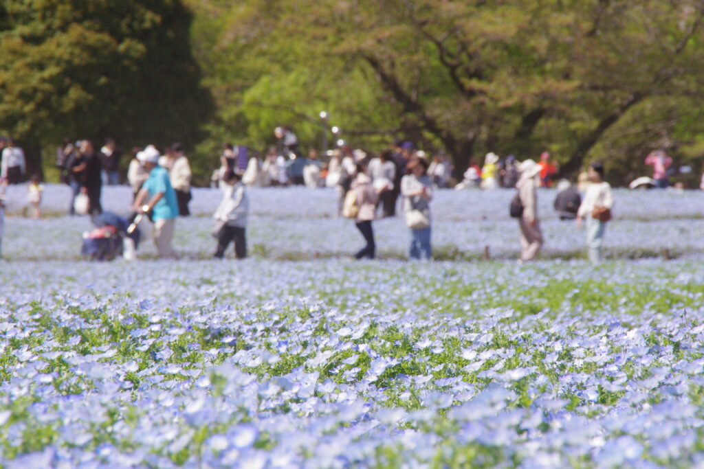 3月20日から5月24日までフラワーフェスティバル2026が開かれている。ソメイヨシノはほぼ花が終わり、今は菜の花、チューリップ、ネモフィラが見ごろ。もう平日にも来られるんだけど、今日起きたら天気がいい。混んでいるかもしれないけれどと出かけてきた。人は多かったけど、いたたまれないほどじゃなかった。東アジアや東南アジアの人たちはいたけど、都心で見かける明らかな訪日客をほとんど見なかった。