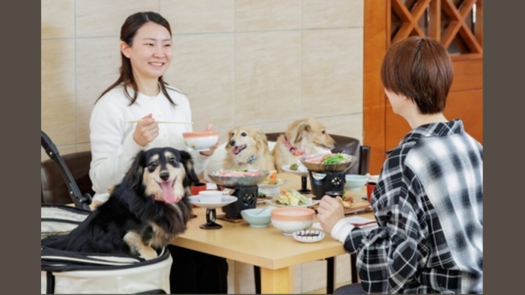 近年、犬と一緒に旅行を楽しむ需要が高まる中、従来の温泉ホテルから犬同伴型へと機能を拡充する。客室にはリードフックやフードボウル、ペットサークル、トイレ用品などを備え、旅行時の負担軽減を図る。