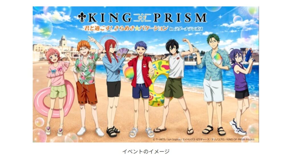 ラグーナテンボス(川村啓祐社長、愛知県蒲郡市)は5月16日(土)から、運営するテーマパーク「ラグナシア」で、劇場アニメシリーズ「KING OF PRISM(キングオブプリズム)」とのコラボイベント「KING OF PRISM 君と過ごす! きらめき☆バケーション in ラグーナテンボス」を開く。