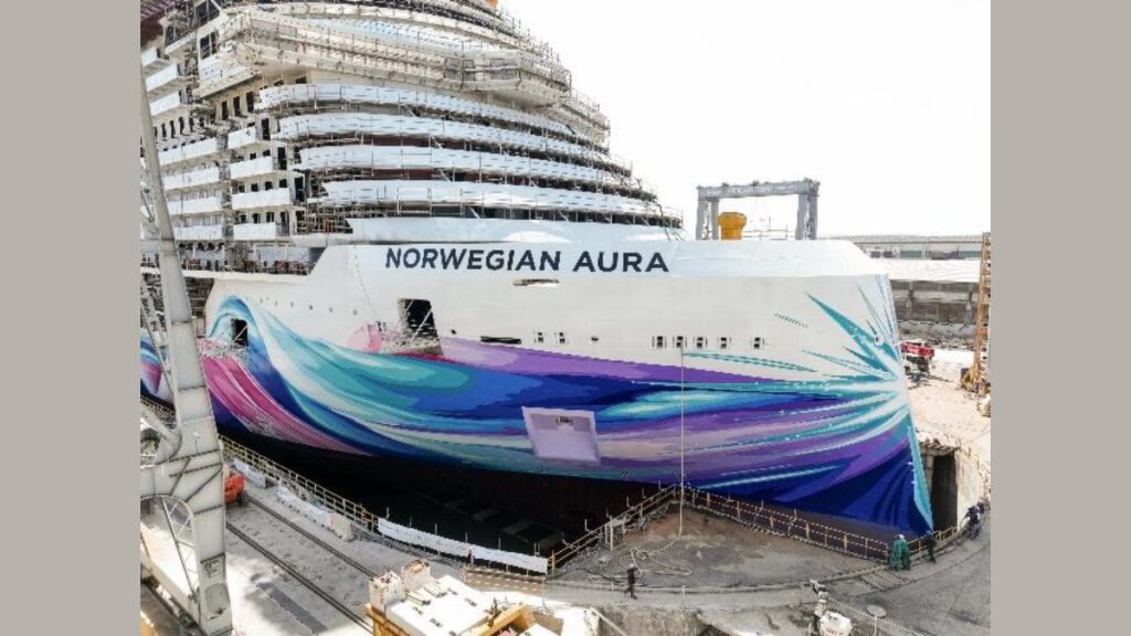 ノルウェージャンクルーズライン(NCL、米国マイアミ)は4月20日、同社最大となる新造船「ノルウェージャン・オーラ」の進水式をイタリア・モンファルコーネのフィンカンティエリ造船所で実施した。2027年5月に就航する。